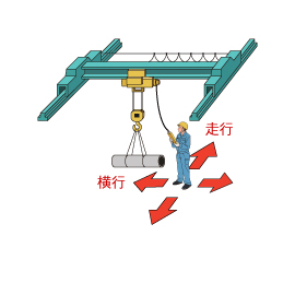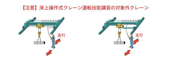 つり上げ荷重5t以上の床上操作式クレーンの運転作業に従事する方は、労働安全衛生法に基く技能講習を修了しなければならないことが義務づけられています。